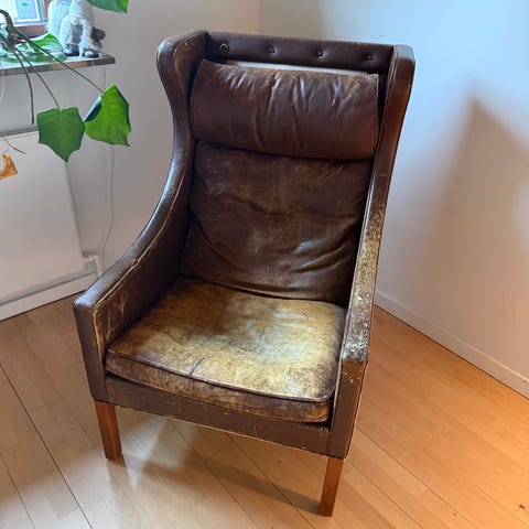 Fin gammel øreklapstol. Ikke en Børge Mogensen, men ligner meget.