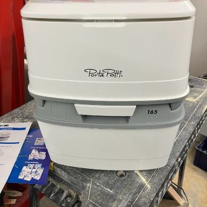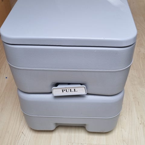 Camp+Nature campingtoilet med samlet kapacitet på 12 + 20 liter i grå plast. Toilettet er bærbart og egnet til brug i f.eks. campingvogn, telt, båd eller kolonihavehus. Øverste tank fungerer som skyllebeholder, mens nederste tank er affaldstank, der kan afmonteres for tømning. Leveres med manuel skyllefunktion via pumpe. Overfladen er glat og kan rengøres med almindelige rengøringsmidler. Toilettet er konstrueret i robust plastmateriale, der tåler udendørs brug og transport.