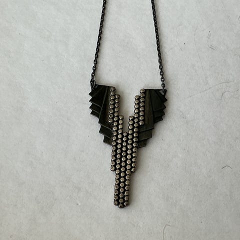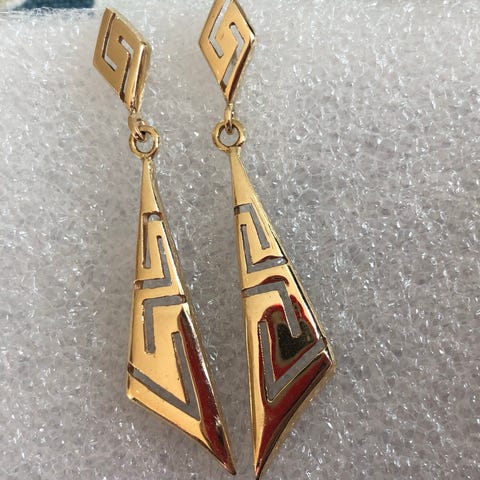 Maria Black øreringe til kvinde i sølv. Øreringene har en mørk, geometrisk vedhængsform og lukkes med almindelig stik-lås bag øret. Velegnet som iøjnefaldende smykke til hverdagsbrug eller festlige anledninger. Bemærk, den ene bagmekanik mangler. Som ny. Brugt 1 gang.