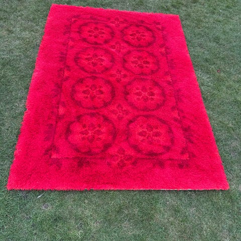 Rya tæppe rødt mønstret