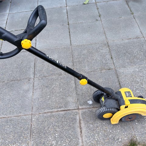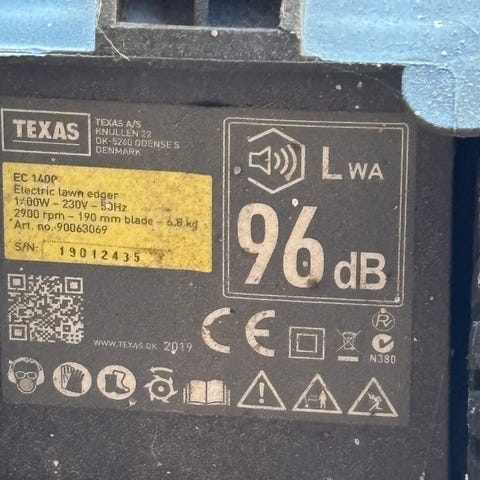 Texas EC 1400 elektrisk kantskærer med 1400W motor. Modellen er beregnet til kanttrimning langs fliser, bede og græsarealer. Maskinen har hjul for stabil føring og justerbar skæredybde via frontmonteret indstillingshjul. El-drevet konstruktion til tilslutning i almindelig stikkontakt. Lydniveauet er angivet til 96 dB ifølge typeskiltet. Velegnet til præcis afskæring af græskanter omkring indkørsel, terrasse og gangarealer.