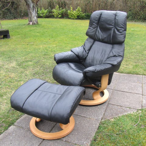 EKORNES - Verdenskendt Norsk Møbelbrand / Høj Stressless læder stol med skammel. Model London.