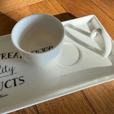 Riviera Maison serveringsbakke i rektangulær form. Bakken er fremstillet i metal og har integrerede håndtag i begge ender, som gør den nem at løfte og bære. Overfladen er glat med let buede kanter. Velegnet som serveringsbakke til drikkevarer, mad eller som dekorationsbakke på bord eller kommode.