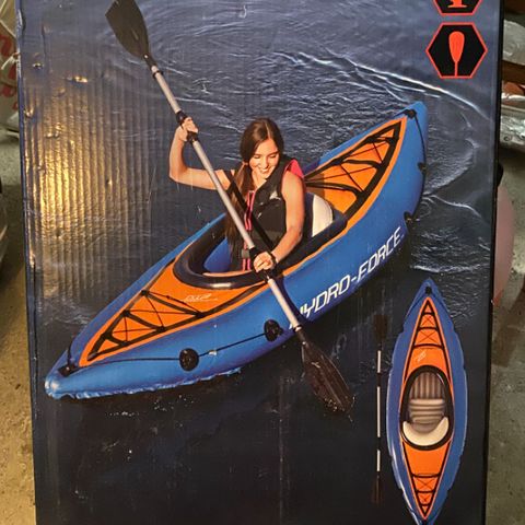 Aqua Marina oppustelig kajak i grøn farve, designet til tre personer. Kajakken har tre aftagelige sæder med ryglæn og justerbare fodstøtter. Den leveres med pagajer, pumpe, reparationssæt og transporttaske, som gør den nem at pakke sammen og transportere. Kajakken har flere luftkamre med separate ventiler for øget sikkerhed og stabilitet. Velegnet til ro-ture på søer, fjorde og roligt kystvand.