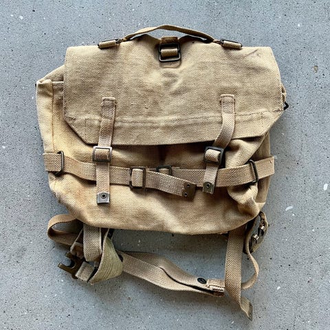 Militær feltudstyr bestående af flere tasker med lommer i forskellige størrelser. Sættet omfatter blandt andet camouflagemønstrede, sandfarvede og grønne tasker samt en signal- eller satchel-taske og køjesæk. Udstyret er egnet til opbevaring og organisering af mindre genstande som værktøj, førstehjælpsudstyr eller personligt grej under udendørsaktiviteter eller feltbrug. Flere dele har bælte- eller remfæste, så de kan monteres på bælte, vest eller anden udrustning. Sælges samlet