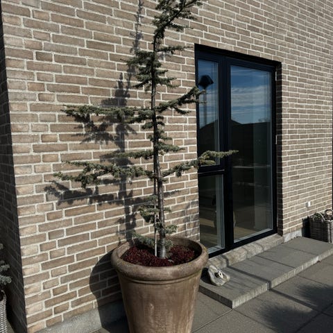 Cedertræer i krukker, velegnede til placering ved indgangsparti, terrasse eller indkørsel. Træerne har en slank, opret vækstform og nåleklædt krone, som giver et grønt udtryk hele året. De er plantet i krukker, hvilket gør dem egnede til flytning og omplacering efter behov. Kan anvendes som dekorativ beplantning ved trapper, langs husmur eller som markering af indgang.