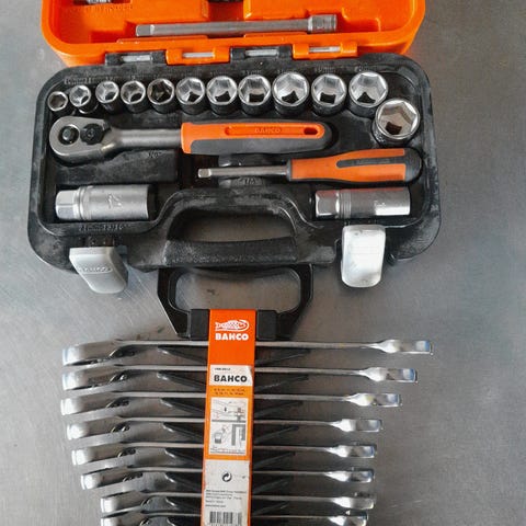 Bahco topnøglesæt med forskellige toppe og forlængerdele i metal. Sættet indeholder flere størrelser af toppe samt forlængere og led, egnet til brug med skraldenøgle eller anden kompatibel holder. Velegnet til generelle mekaniske og tekniske opgaver, hvor der er behov for forskellige topnøglestørrelser og ekstra rækkevidde. Fra 10 p stk