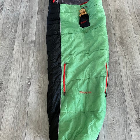 North Field sovepose i sort med gråt fór indvendig. Der er lynlås ned langs siden samt velcro der, hvor lynlåsen ender, og den kan snøres ind ved hovedåbningen samt har en lille bund til fødderne.
