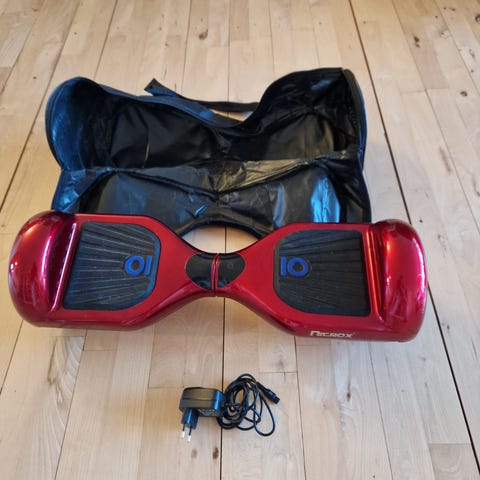 V7 elektrisk hoverboard med to 350W motorer og 4,4 Ah lithiumbatteri. Farve: sort. Leveres med oplader og opbevaringstaske som vist på billederne.