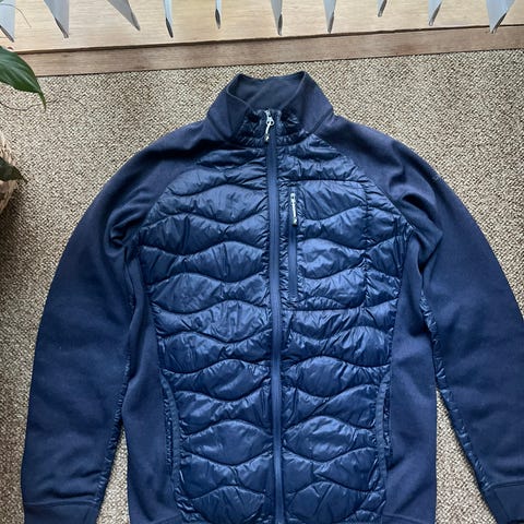 Peak Performance jakke til herre i størrelse XXL. Jakken er blå og indeholder elastan, hvilket giver en smule stræk og bevægelsesfrihed. Den har gennemgående lynlås foran, to lynlåslommer i siden og kontrastdetaljer på skuldre og ærmer. Egnet som let yderjakke eller mellemlag i hverdagen og til udendørs brug.