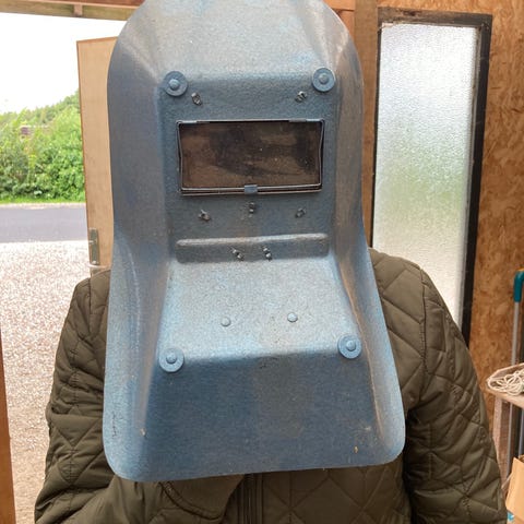 Svejsehjelm med friskluft. Nye filtre og nogle visirer. Alt fungerer