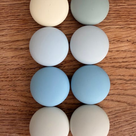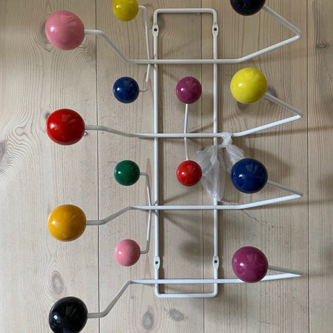 Vitra Coat Dots knager er et sæt vægknager designet til ophæng af tøj, tasker eller til dekorativ brug i entré, soveværelse eller andre rum. Sættet består af 3 kugleformede knager i lyse nuancer af hvid og lyseblå. Knagerne monteres på væggen og kan placeres samlet eller hver for sig efter behov. Designet er enkelt og funktionelt med afrundede former, som er velegnede til at skåne ophængte tekstiler. Velegnet til brug i private hjem eller kontormiljøer, hvor der ønskes en diskret og moderne opbevaringsløsning på væggen.