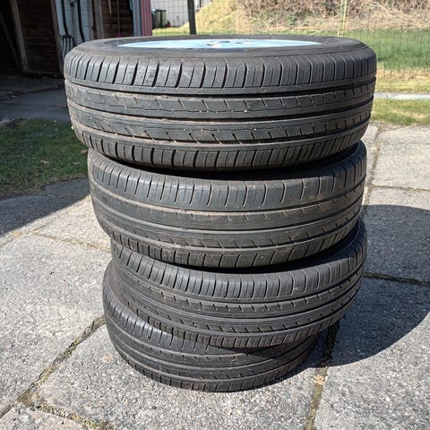 Fælgene er pæne uden større skader, og dækkene har stadig brugbart mønster.