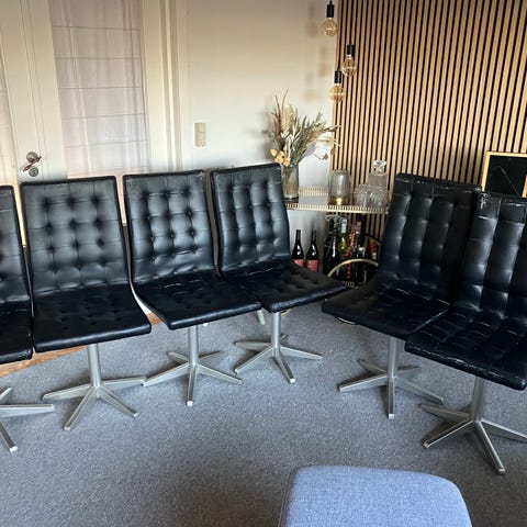 5 vintage Johanson Design barstole fra 1960’erne i brun læder med messing stel. Stolene kan dreje. Stolene er fra 1960’erne og har derfor nogle mærker men er i fin stand.
