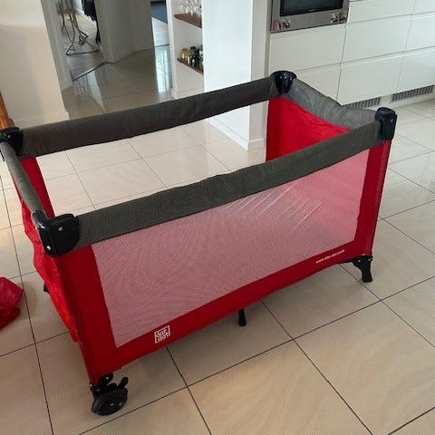 Babyseng, Sort rejse seng til baby, Næsten ubrugt. Let at slå op og i