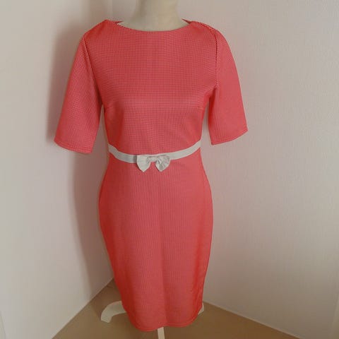 Paper Dolls festkjole i str. 38. Kjolen er i sort polyester med overdel i pailletstof og nederdel i enkel, figursyet model. Korte ærmer og åbning i ryggen med lukning bagtil. Velegnet som cocktail- eller festkjole.