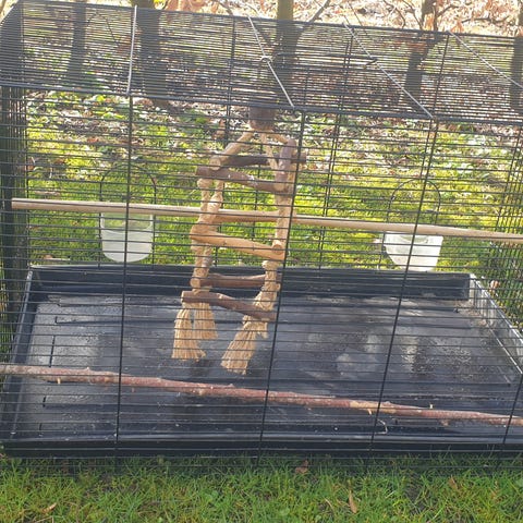 Buret er på hjul og er dermed let at flytte ved regøring, eller hvis buret skal udendørs i Sommervejret