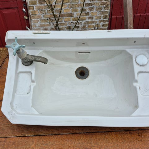Lyseblå retro håndvask og hylde