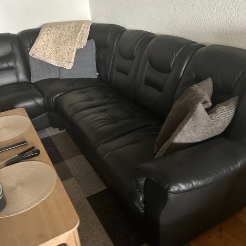 Sort læder power recliner hjørnesofa