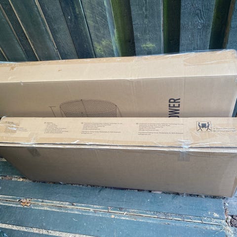 2 år gammel (Købt i marts 2024 for 5000kr) - har stået ude og har derfor lidt spor af det. Fjedrene fungerer fint og har været beskyttet under sikkerhedsnettet (se evt. billede for at se standen)