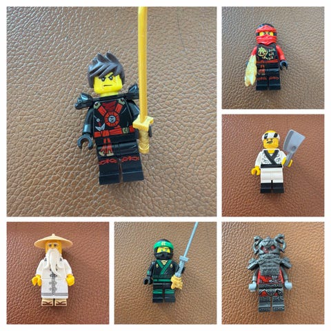 LEGO NINJAGO lot — 7 figurer, 3 sæt (bygget) — manualer medfølger