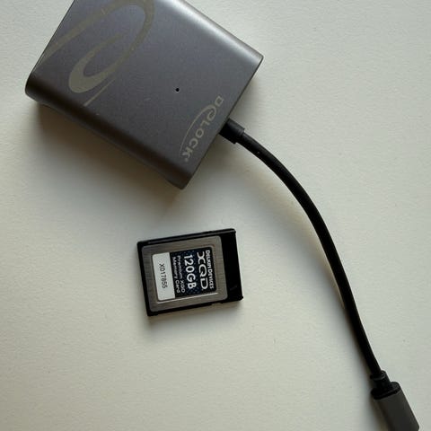CFexpress type B, 128 GB + Sanddisk kortlæser