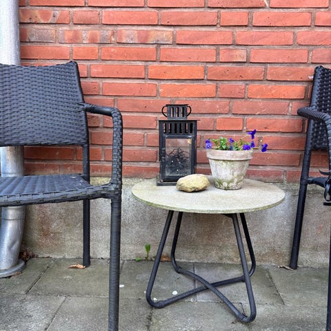kan nemt renses med vand og sæbe og så står det flot lys (ligesom den lille runde cirkel hvor der har stået en plante og derfor ikke er beskidt)