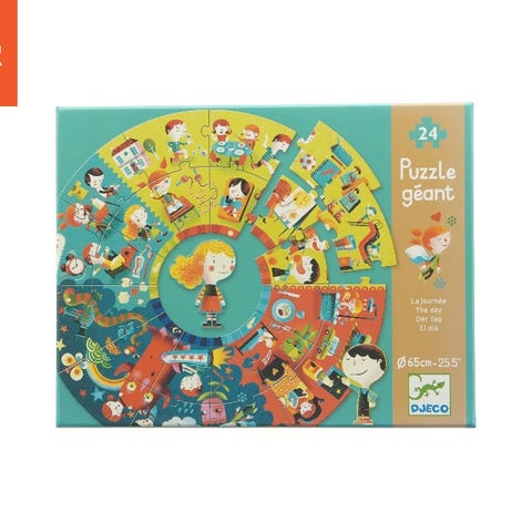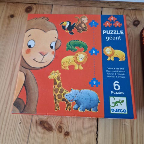 Djeco Puzzle géant trafik puslespil med vejbaner og trafikskilte. Puslespillet består af store brikker, der samles til en by med veje, fodgængerfelter og bygninger. Med til sættet hører fritstående trafikskilte og et trafiklys i træ, som kan placeres rundt på banen. Motiverne er farverige og detaljerede med blandt andet huse, butikker og forlystelser. Velegnet som aktivitetslegetøj, hvor barnet kan øve sig i at lægge puslespil og samtidig lære om trafik og færdselsregler. Der er 24 brikker i alt. 100 x 63 cm. Fra alderen 3 år og op efter.
