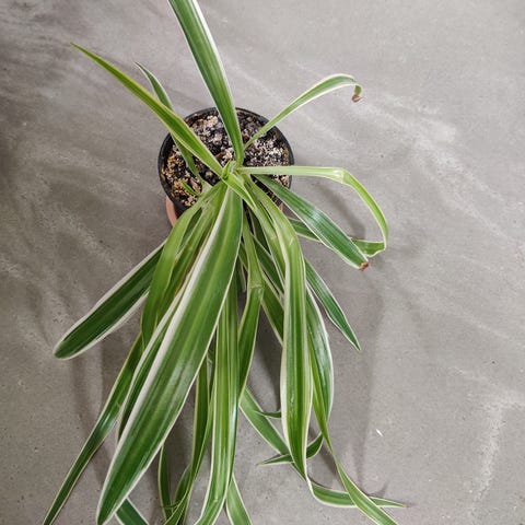 Grønne aflæggere af spiderplante (Chlorophytum comosum) i potter.