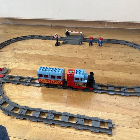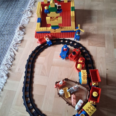 LEGO DUPLO togbane med tog, vogne og skinner