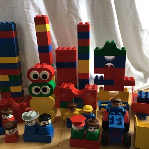 LEGO DUPLO legetøjssæt med bus, biler, figurer og træer