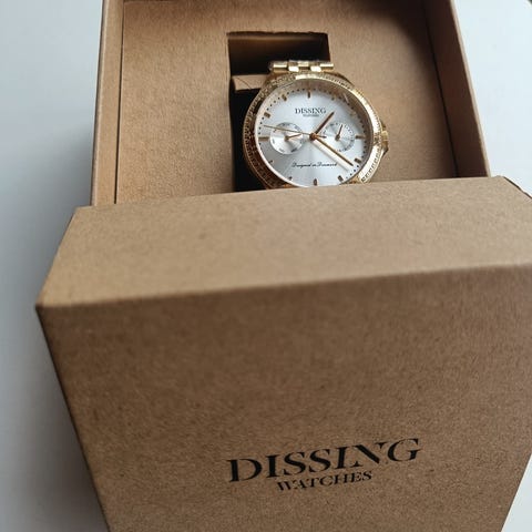 Puderne var for store til kvinde ure, så der har aldrig siddet nogen på dem og den er straks pakket tilbage i orginal forsendelse kassen, som også ses på billedet.