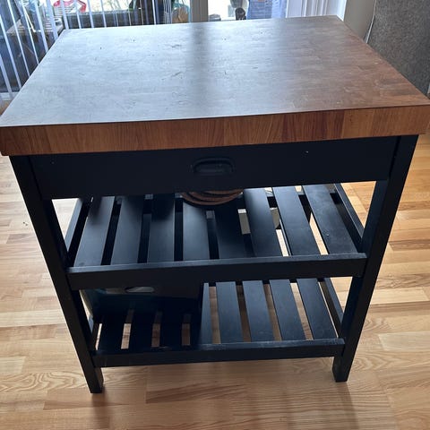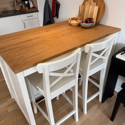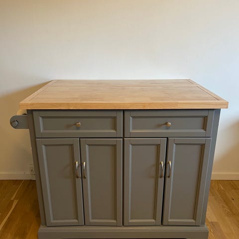 Sælger denne flotte og praktiske køkkenø fra IKEA – model TORNVIKEN i råhvid med egetræs-look bordplade.