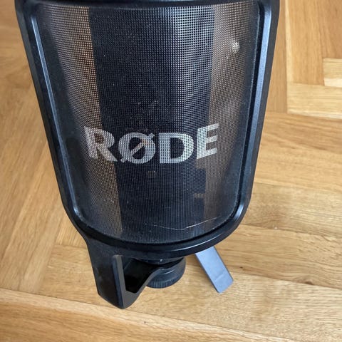 Røde SVM mikrofon til kamera. Mikrofonen er designet til montering på kamera via hotshoe-beslag og har indbygget støddæmper. På siden findes tænd/sluk-knap samt -10 dB pad. Den tilsluttes via fastmonteret spiralformet minijack-kabel. På billederne ses desuden en vindhætte (deadcat) og ekstra smådele, som kan bruges sammen med mikrofonen. Velegnet til optagelse af lyd til video, interviews og generel kamerabrug. Nypris over 1.000.-