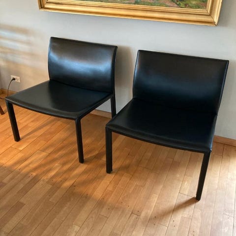 Sæt af 2 Stilrene Loungestole i Sort Læderlook og Krom (ukendt producent)