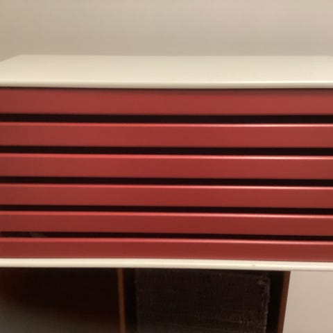 Flot Montana 6122 skuffemodul i en fin og farverig kombination (turkis, rød og orange skuffer med grå ramme).