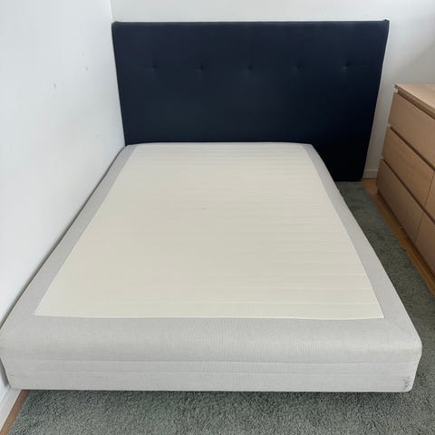 Sengen er fra Jysk,IKEA ….. Ærlig kan ikke helt huske hvilke sted vi købte den.