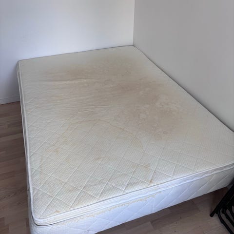 Topmadras medfølger, men har synlige skjolder.