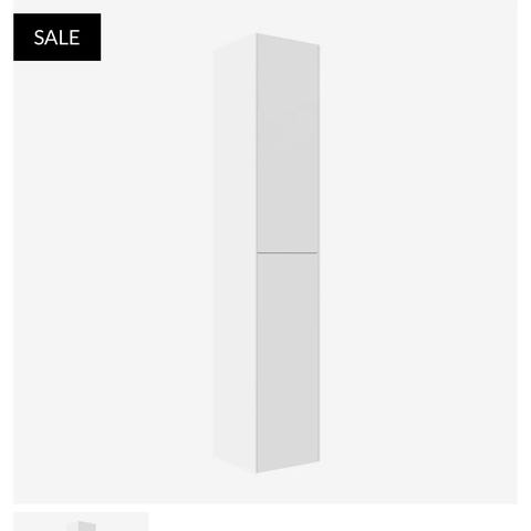 Møblet har været brugt i 1 måned, men ønsker et andet look på badeværelset. På et af hjørnerne af skabet ses en mindre skade på overfladen, som fremgår af billedet.