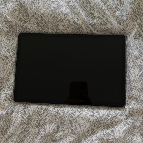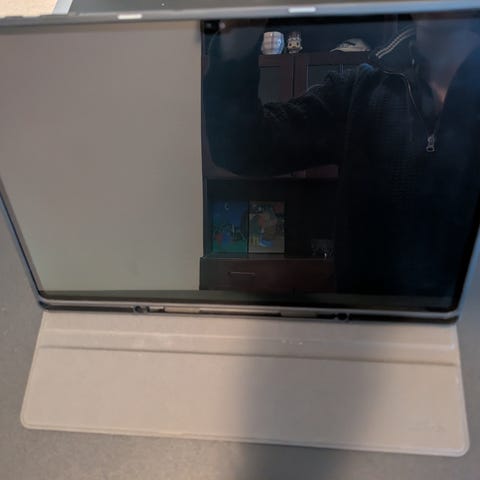 Har en lang ridse/tryk i skærmen, som dog ikke har udviklet sig i flere år. Det bemærkes ikke når tablet er i brug.