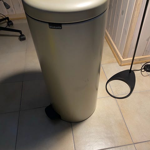 Affaldsspand i form af en pedalspand i rustfrit stål. Cylindrisk model med låg, der åbnes via fodpedal. Inderspand i plast, som kan tages op for nem tømning og rengøring. Velegnet til køkken, bryggers eller badeværelse. Højde 65 cm.