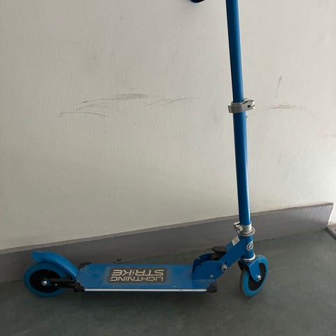 Streetsurfing løbehjul til børn med 3 hjul i orange og sort. Løbehjulet har to forhjul og et baghjul for øget stabilitet. Styret er højdejusterbart og har skridsikre håndtag. Fodpladen er udstyret med skridsikkert underlag, og der er bagbremse over baghjulet. Egnet til mindre børn, der har brug for ekstra balance ved kørsel.