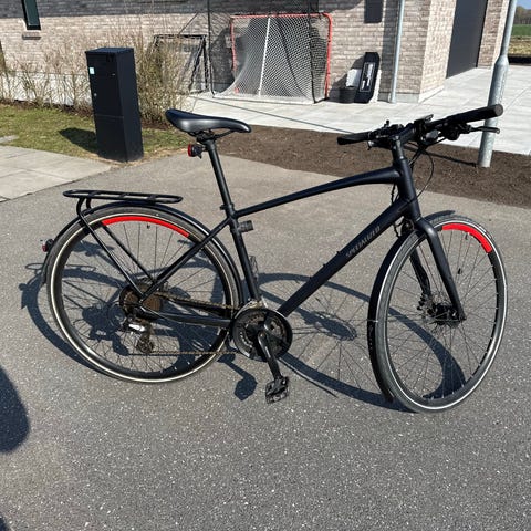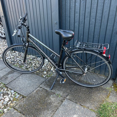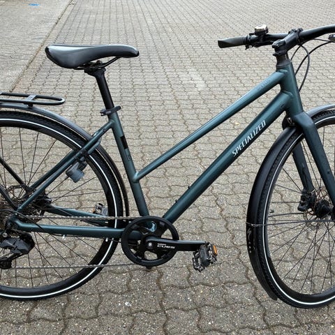 Specialized hybridcykel til kvinder med stelstørrelse L og 28"/700c hjul. Cyklen har et let stel og er velegnet til både bykørsel og længere ture på asfalt og grus. Den blå farve giver et neutralt udtryk, og geometrien er tilpasset kvindelige ryttere for en mere oprejst og komfortabel kørestilling. Hybridtypen kombinerer egenskaber fra city- og trekkingcykler og egner sig til daglig transport, pendling og fritidscykling.