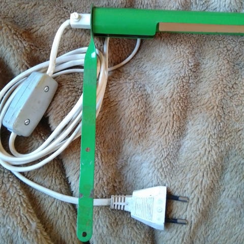 Lampe af metal med foldet skærm produceret af ABO Randers. Ledning med afbryder ca. 180cm