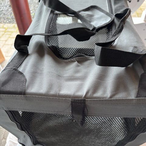 Materialet er let og sammenklappeligt, så tasken kan foldes fladt for nem opbevaring. Egnet til mindre kæledyr som hunde eller katte til transport eller som midlertidig hvileplads.
