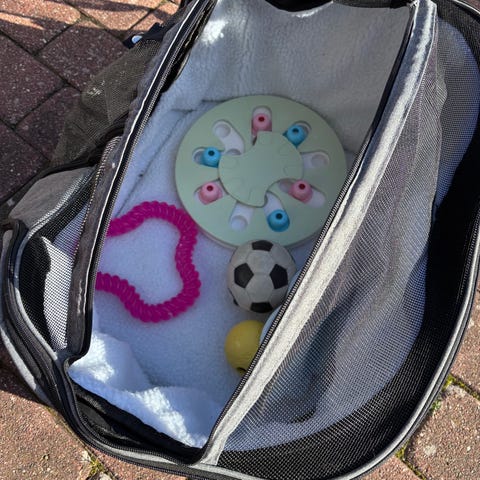 Kan lynes op i midten således dyret/dyrene kan bruge hele taskens bredde.