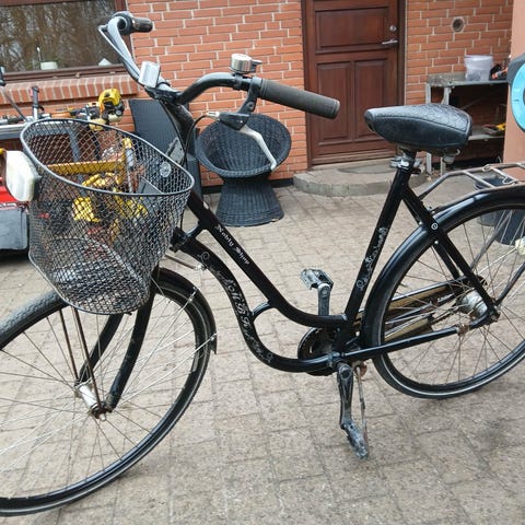 Fin ældre MBK cykel. Hvis man mangler et cykelprojekt. Problemer med gear, skal formentlig have nye dæk. Byd