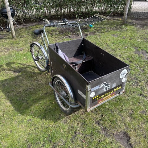 Vi sælger vores gamle og noget slidte Christiania ladcykel, da vores datter er blevet for stor og vi står foran en snarlig flytning.