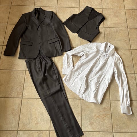 Sættet består af jakke, bukser og vest.