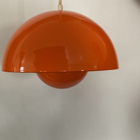 &Tradition Flowerpot pendel designet af Verner Panton. Loftlampen er udført i metal og har en hvid lakeret overflade. Klassisk halvkugleformet skærm med den karakteristiske indvendige kuppel, som giver et nedadrettet og blændfrit lys. Velegnet som belysning over bord, i køkken eller opholdsrum. Leveres med hvid ledning og loftophæng med Verner Panton-mærkning.